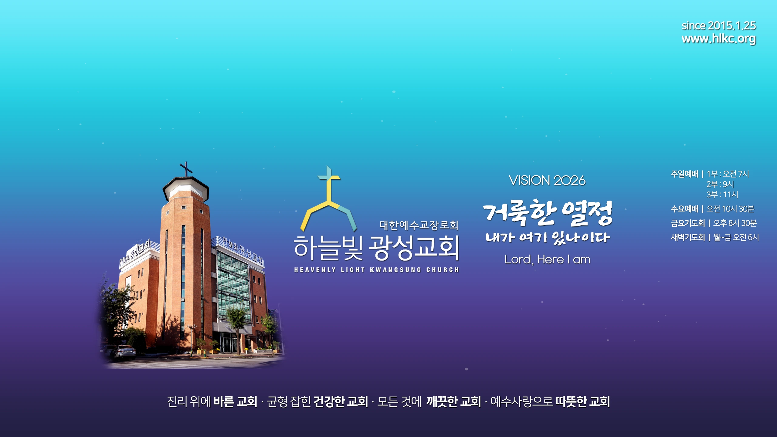 일상 속의 예배자, 시인들의 공동체 대한예수교장로회 하늘빛 광성교회 (Heavenly Light Kwangsung Church) -------------------------------------------------- 진리 위에 바른 교회 균형 잡힌 건강한 교회 모든 것에 깨끗한 교회 예수 사랑으로 따뜻한 교회 -------------------------------------------------- [ 예배 실시간 LIVE ] 주일예배 | 1부 : 오전 7시 / 2부 : 9시 / 3부 : 11시 수요예배 | 오전 10시 30분 금요기도회 | 오후 8시 30분 새벽기도회 | 오전 6시 [ 오시는 길 ] 고양시 일산서구 대화동에 있습니다. 주소 : (10383)경기도 고양시 일산서구 주화로 165 (대화동2246) [ 교회 홈페이지 ] http://hlkc.org [ 온라인 헌금 안내 ] 국민 270101-04-281618 [ 행복의 길 예수 그