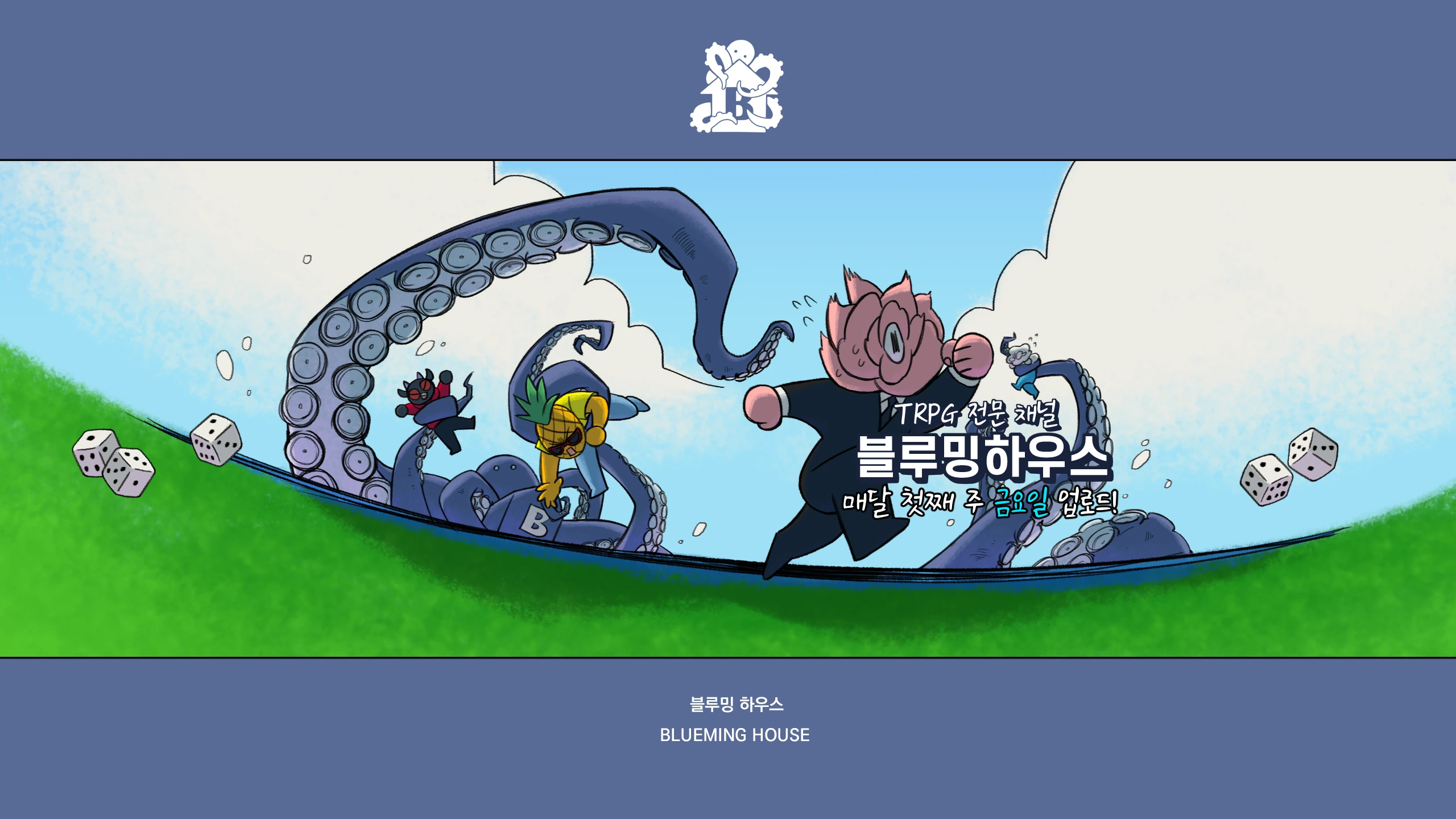 TRPG(Tabletop Roleplaying Game) 리플레이나 리뷰, 잡담, 등 팀 블루밍하우스의 기록을 남기는 채널입니다. 주력으로 하는 룰은 크툴루의 부름 7판. 팀원 : 구울구울, 달링꿀, 램, 에피 업로드에 대한 세세한 정보는 트위터에. http://twitter.com/blueminghouse 비즈니스 문의는 [email protected]