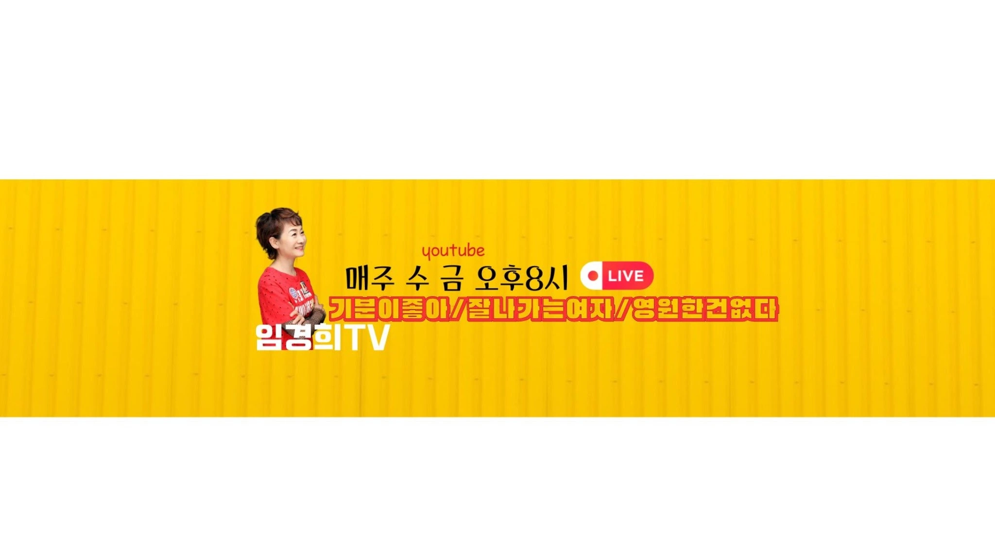 #실시간 #라이브 #별밤음악공간 싱어송라이터 임경희 입니다^^ 임경희TV를 방문해 주셔서 감사합니다. 키보드/드럼/숄더건반/장구를 연주하며 자작곡 "기분이 좋아" "잘나가는 여자" "영원한건 없다" 등으로 활동하는 연주자겸 가수입니다. 다양한 장르를 통해 힐링을 경험해 보시길 바랍니다. 매주 화요일 12시에 업로드 됩니다. 목요일밤 9시에는 숄더건반 신디사이저 드럼연주와 노래로 라이브 방송 합니다♡ 공연/행사 문의 카톡ID/mnbv6303 E-mail/ [email protected] ☎ 02 - 422-7888 (주)온에어컴퍼니 후원계좌 /임경희/카카오뱅크 3333 36 5573114 소중한 후원 감사합니다. 《2021.8.7》