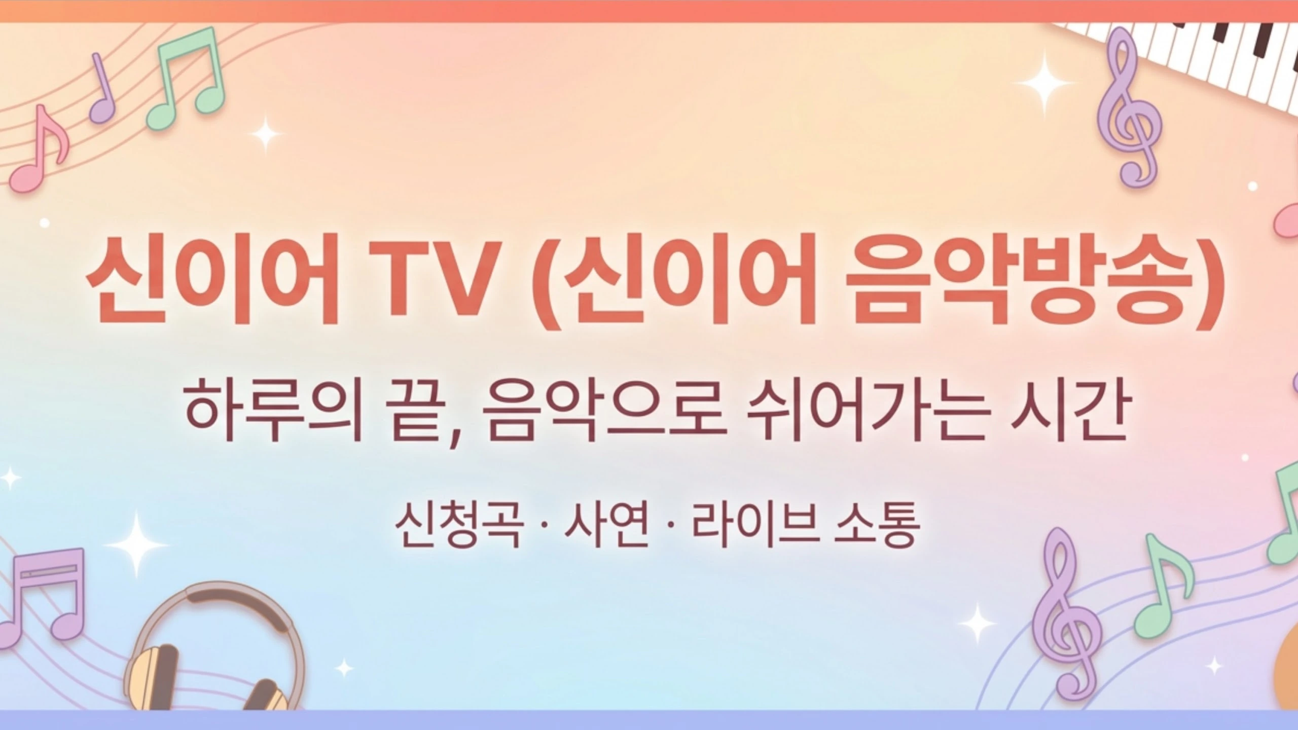 #신이어TV #신이어음악방송 #중년음악 #힐링라이브 #중년이야기 신이어 TV는 중년의 삶과 사랑, 인생 이야기를 나누는 채널입니다. 『시니어가 아닌 신이어로 산다』 책 이야기와 강의, 중년 공감 콘텐츠를 통해 삶의 지혜와 위로를 전합니다. 중년을 위한 힐링과 변화의 신이어 TV입니다. 또한 저녁 시간에는 신이어 음악방송을 통해 7080 추억의 노래와 함께 편안한 시간을 나누고 있습니다. 채팅으로 신청곡도 가능합니다. 중장년을 위한 힐링 음악과 신청곡, 사연으로 함께하는 저녁 라이브 방송. 부담 없이 듣고, 편안하게 머물다 가세요. 🎵 라이브 음악방송 🎧 신청곡 & 소통 🌙 하루를 정리하는 음악 시간 🎵 라이브 음악방송 시간 · 월 / 수 : 저녁 10시 ~ 12시 · 화 / 목 / 금 / 토 : 저녁 9시 ~ 11시 · 일요일 : 휴방 ※ 방송 시간은 상황에 따라 변동될 수 있습니다.