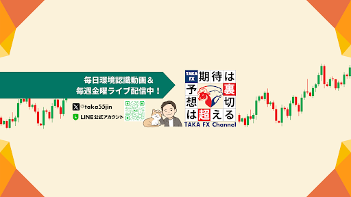 損小利大トレーダーを目指すFXコミュニティ https://yoor.jp/door/TAKA_FX 専業歴19年目。 声が若いと言われますが立派なおじさんです。 動画投稿は自分の知識をアウトプットするためのコンテンツとして2020年より始めました。 その中で自分の知識が誰かのためになればとも思っています。 何よりも大事にしているのは相場環境の把握。 細かな手法は最後の最後に入る場所をより厳選するために使うに過ぎない。 今の環境の把握が正しければ相場が助けてくれることも多いです。 シンプルに今の位置は高いのか?安いのか?強いのか?弱いのか? これがわからない中ではどんな素晴らしい手法も意味はないと思います。 誤解を恐れず極端なことを言えば環境の把握がしっかりしていればどんな手法でも問題ないとすら思います。 それくらい環境の把握が投資においては一番大事。 環境がわかればリスクが把握できます。 リスクが把握できれば入る場所が見えてきます。 このことを動画で繰り返し伝えていければと思います。 何も勝率9割の手法が必要なわけでも、カリスマトレーダーのように優れたテクニックが必要なわけでも無いです。 努力は必要です。気持ちをコントロールすることも必要です。じっと待つことも必要です。 でも、どれも僕みたいな本当の一般人にでも絶対できることです。 特にスキャルピングで勝てなくて挫けている人。 個人的にはスキャルピングがトレードで一番難しいと思います。 もう少し時間軸を伸ばしてじっくり取り組んでみてください。 挫けたり勝てないと諦めかけてる人、もう一度頑張ってみませんか?
