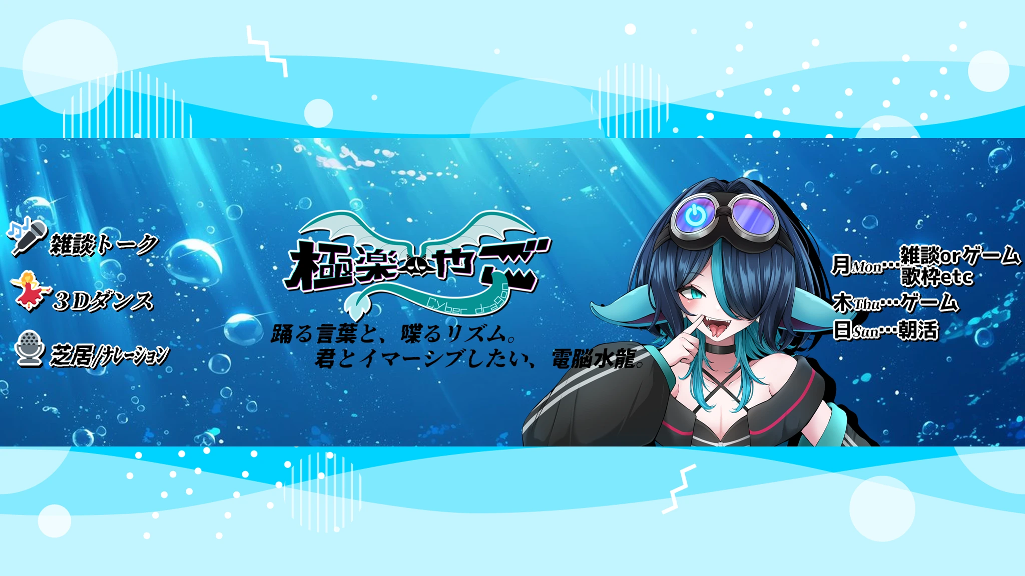 個人勢VTuber/水属性竜人Vdancerの「極楽やご」です! 🎤 雑談・ナレーション・TRPGで喋り、💃 3Dで踊り、🎮 レトロ&ホラーゲームで叫ぶ── “踊る言葉と、喋るリズム。”をモットーに、感情を揺らすコンテンツを日々発信中! 好きな作品::東方Project(原作も二次も愛)・コープスパーティー(ガチ勢)・平成初期のレトゲー(心の故郷) ◆活動ジャンル ・3DダンスShorts/踊ってみた動画 ・トーク配信/ナレーション・ASMR・TRPG ・ゲーム実況(ホラー/ダーク/レトロ系) ・Shorts(ダンス/お芝居/配信切り抜き) 📅活動記録 2020/7/21 初動画投稿 2020/9/18 初配信 2022/3/3 登録者1000人達成 2024/12/11 登録者2000人達成 📡 X(旧Twitter): https://twitter.com/akame_518 📮 お問い合わせフォーム: https://forms.gle/ibN18LM2DU7Trd5q8