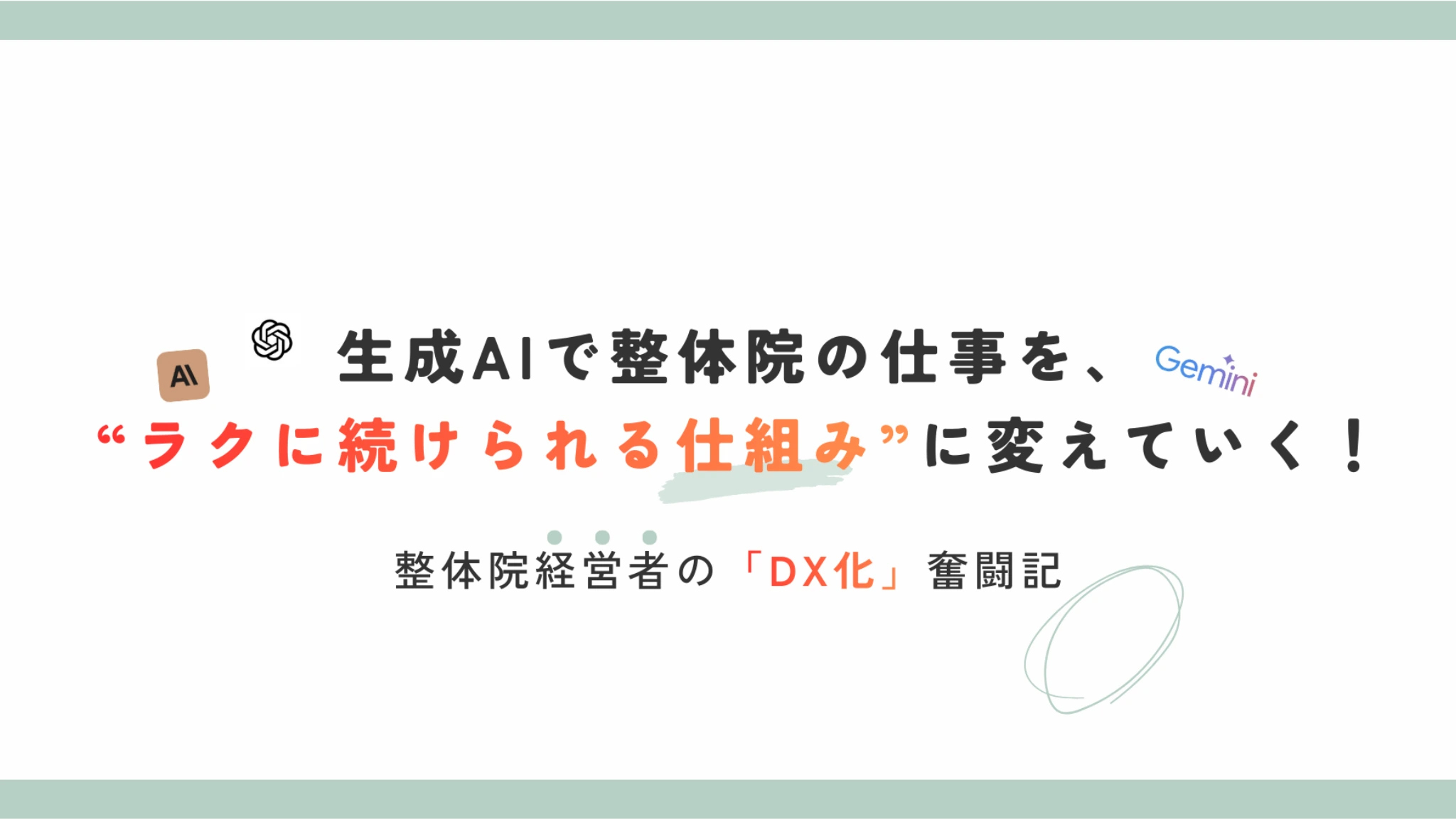 生成AIで、整体院の仕事を“ラクに続ける仕組み”に変えていく。 整体院経営の現場で、予約対応・問い合わせ返信・説明文づくり・事務作業など「毎日くり返す仕事」を、生成AIで“仕組み”として整えています。流行りの使い方を追うより、実際に院で試して、使えた工夫だけをシェアするスタイル。個人開発も交えながら、現場がラクになって、サービスの質も上がる。そんな実践の記録を発信しています。