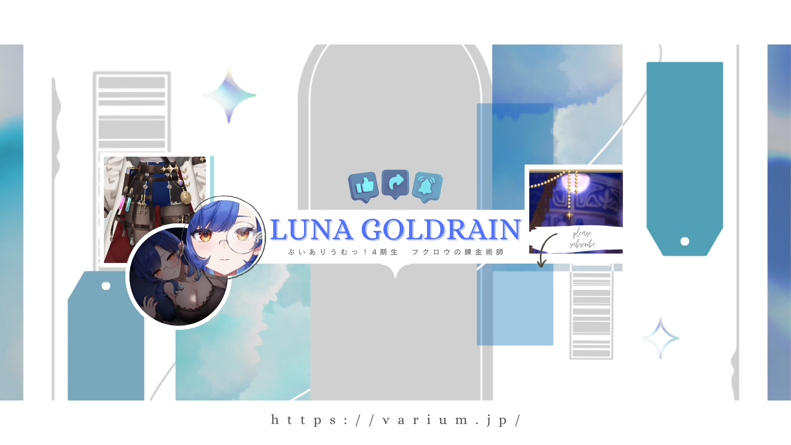 🔻ほぼ毎日23:00から配信中 錬成開始! Varium4期生 フクロウの錬金術師 ルナ・ゴールドレインだ チャンネル登録・高評価・コメントよろしくお願いします ☽*.┈┈┈┈┈┈┈┈┈┈┈┈︎︎☾ *. ⋫ᴠᴀʀɪᴜᴍ 𝟦ᴛʜ ɢᴇɴᴇʀᴀᴛɪᴏɴ ルナ・ゴールドレイン (ʟᴜɴᴀ ɢᴏʟᴅʀᴀɪɴ) 4/7(月) 20:00 - ᴅᴇʙᴜᴛ ꜱᴛʀᴇᴀᴍ » https://www.youtube.com/@LunaGoldrain 夜羽月みるか (ʏᴏᴜᴢᴜᴋɪ ᴍɪʀᴜᴋᴀ) 4/8(火) 20:00 - ᴅᴇʙᴜᴛ ꜱᴛʀᴇᴀᴍ » https://www.youtube.com/@Youduki_Miruka 兎ノ花ののち (ᴜɴᴏʜᴀɴᴀ ɴᴏɴᴏᴄʜɪ) 4/9(水) 20:00 - ᴅᴇʙᴜᴛ ꜱᴛʀᴇᴀᴍ » https://www.youtube.com/@unohananonochi 綺音れむ (ᴀɴᴏɴ ʀᴇᴍᴜ) 4/10(木) 20:00 - ᴅᴇʙᴜᴛ ꜱᴛʀᴇᴀᴍ » https://www.youtube.com/@AnonRemu ☽*.┈┈┈┈┈┈┈┈┈┈┈┈︎︎☾ *. ⋫ᴍᴏᴍ ⁝ きのと 様 (https://x.com/shima_je) ⋫ᴘᴀᴘᴀ ⁝ rariemonn 様 (https://x.com/rariemonn765) ☽*.┈┈┈┈┈┈┈┈┈┈┈┈︎︎☾ *. ⋫x ⁝ https://x.com/LunaGoldrain ⋫ᴠᴀʀɪᴜᴍ x ⁝ https://x.com/varium_info ⋫ᴠᴀʀɪᴜᴍ ʏᴏᴜᴛᴜʙᴇ ⁝ https://youtube.com/@VariumOfficial?si=mrhGI9JS92hl86uz ⋫ᴠᴀʀɪᴜᴍ ʜᴘ ⁝ https://varium.jp/ ☽*.┈┈┈┈┈┈┈┈┈┈┈┈︎︎☾ *. #vtuber #varium #新人vtuber
