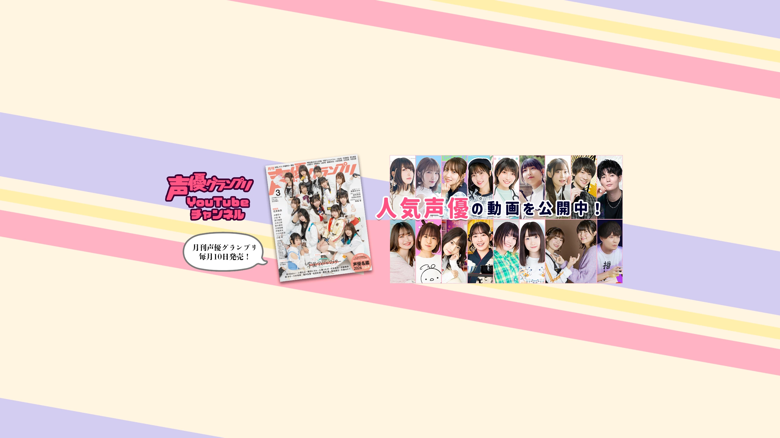 声優ファン必読のNo.1月刊声優誌『声優グランプリ』(声グラ:せいぐら)の公式YouTubeチャンネルです! 人気声優による動画番組やラジオ番組を、た~っぷり&ハイペースで生配信&更新中! また、人気声優からの当チャンネルオリジナルコメント動画や、 声優グランプリ本誌の掲載記事と連動した最新オススメMVなども配信! 声優ファンの皆様、ぜひぜひチャンネル登録をお願いします! ↓ https://www.youtube.com/seigura 【動画番組】 ●内田彩『内田彩のポンポンといっしょ!』 ●大久保瑠美『大久保瑠美の◯◯な件』 ●上田麗奈『アトリエReina』 ●山崎エリイ『エリイクリニック』 ●石飛恵里花『石飛恵里花(エリリン)のふわふわキャンパスライフ 』 ●指出毬亜 『指出毬亜の指出とサシで』 ほか 【ラジオ番組】 ●高田憂希&千本木彩花『高田憂希・千本木彩花のしゃかりきちゃん』 ●長縄まりあ『長縄まりあのまりありうむ』 ほか <声優最新情報はこちらをチェック!> 【声優グランプリ公式サイト・seigura.com】 https://seigura.com/ 【運営】 株式会社イマジカインフォス