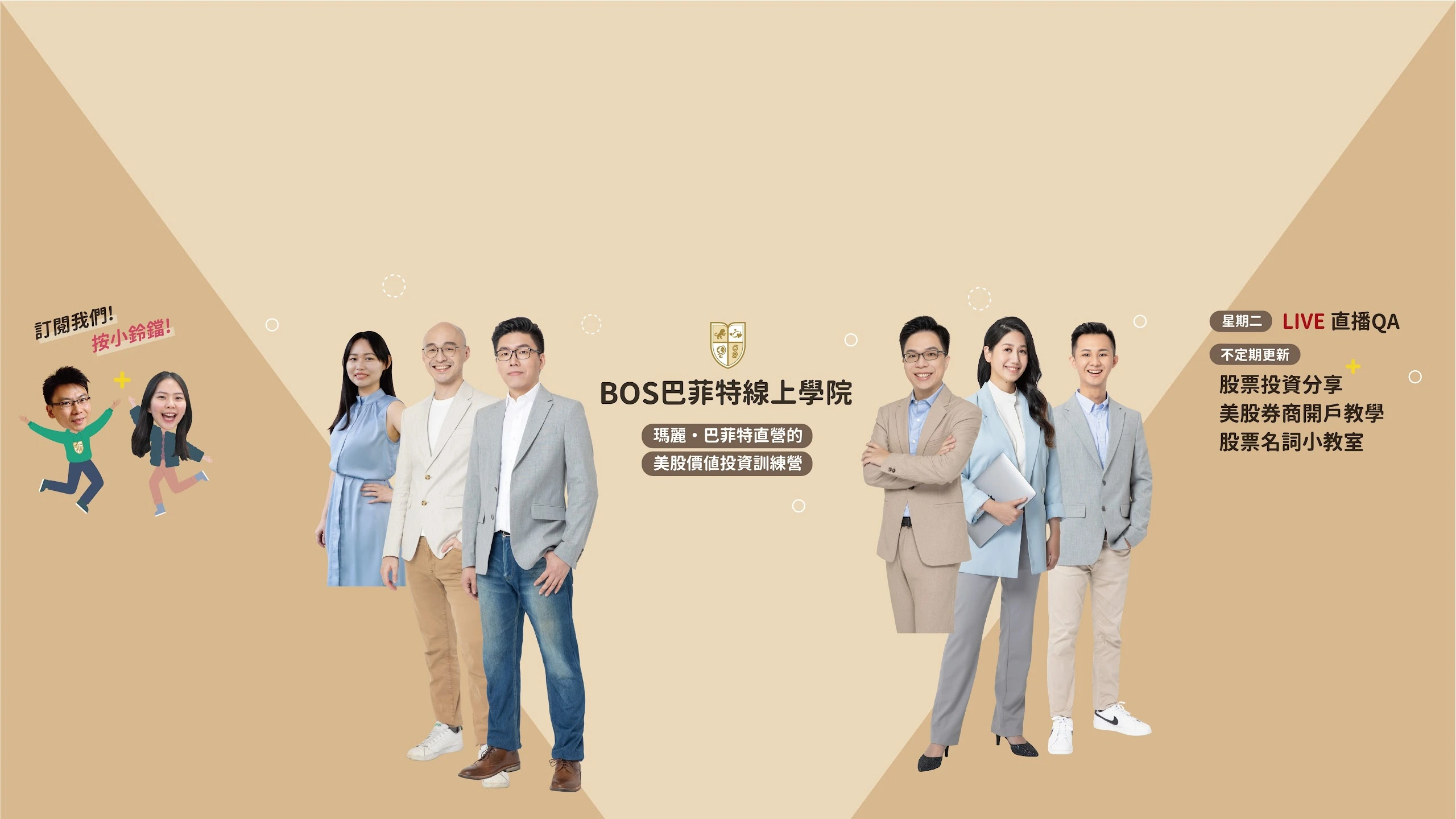 用輕鬆、簡單的方式,學會學校沒教的投資知識! ✔️美股 ✔️投資 ✔️理財 ✔️學習 ✔️股息 ✔️開戶 訂閱《BOS巴菲特線上學院》,金錢思維不漏接! 《BOS巴菲特線上學院》由前巴菲特家族的瑪麗.巴菲特(Mary Buffett)創辦,2019年正式進入台灣市場。學院秉持著『價值投資』的精神與理念,定期舉辦『BOS巴菲特價值投資分享會』,期望更多人學會自行投資,透過真正有效的投資知識與工具,達到自己想要的生活。 官方網站:https://buffettonlineschool.com.tw/ 台北教室:台北市中正區漢口街一段45號8樓